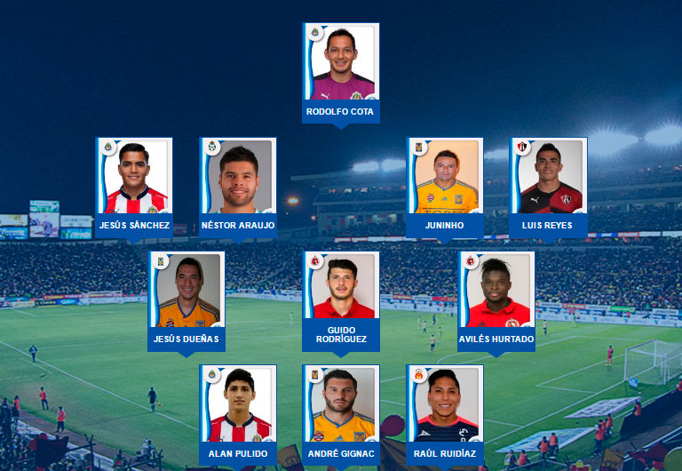 El portero Rodolfo Cota, el defensa Jesús Sánchez y el delantero Alan Pulido son los elementos de Chivas que están dentro de los mejores en este certamen.