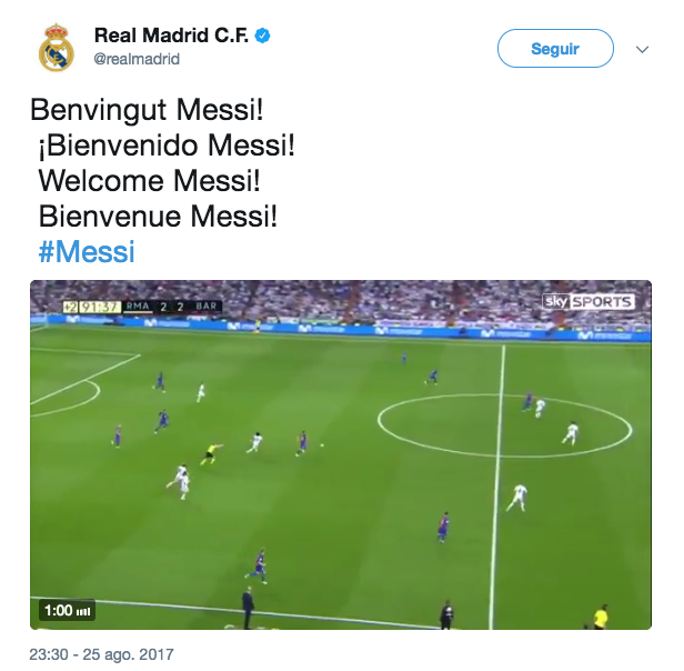 El conjunto blanco publicó un video dándole la bienvenida nada más y nada menos que al mismísimo Lionel Messi, para minutos después evidenciar que todo se trataba de un nuevo hackeo.