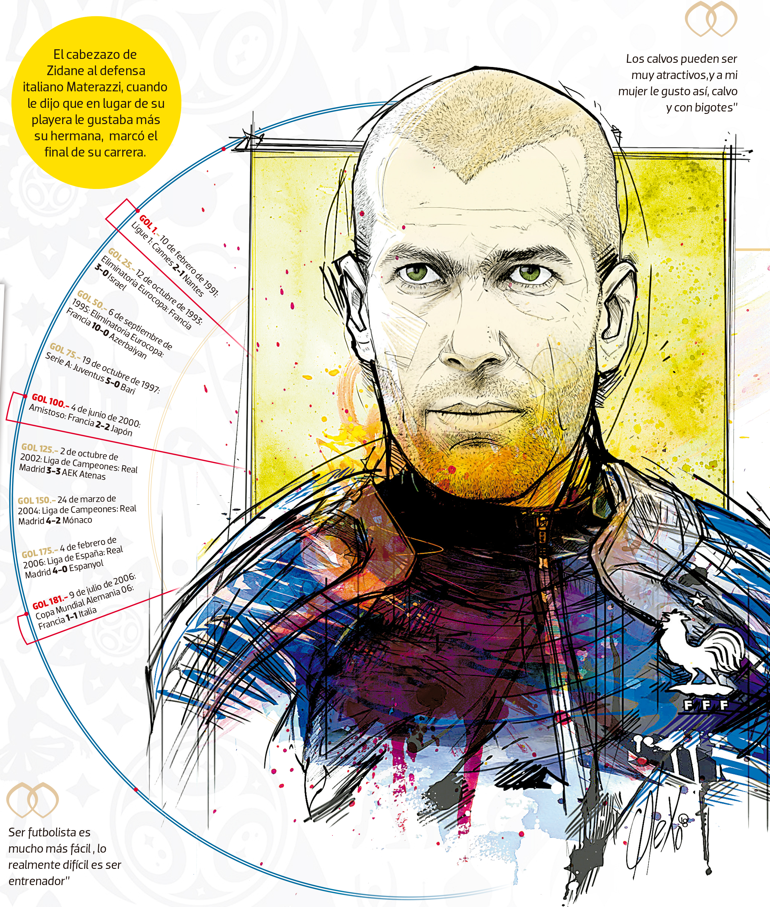Pocos son los futbolistas que tienen ese aire hipnótico capaz de unificar multitudes. Quien haya visto a Zidane difícilmente podrá olvidar su juego: es el poder de la permanencia. Con esa calva precoz que siempre lo hizo ver más viejo de lo que en realidad era, Zinedine flotaba sobre el campo con la certeza de que de sus pies nacía el milagro del juego.
