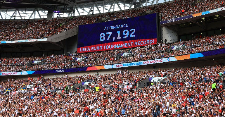 La gran final de la Eurocopa Femenina 2022 que se está celebrando en el histórico estadio de Wembley en Londres, Inglaterra, se preparó para hacer historia, no sólo por que el gran partido que alemanas e inglesas no están regalando, sino por la gran entrada que el público dio. 87,192 personas recibió la catedral del futbol mundial en una de las mejores entradas que se han visto en la historia del futbol.