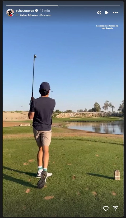 En su cuenta de Instagram, Sergio Pérez subió una historia en la que juega golf y, de fondo, tiene la canción Prometo de Pablo Alborán, en una señal a que se queda en la escudería para la siguiente temporada: “Prometo que no pasarán los años. Arrancaré del calendario las despedidas grises. Los días más felices no han llegado. Te prometo olvidar mis cicatrices. Y devolver lo que he robado”.